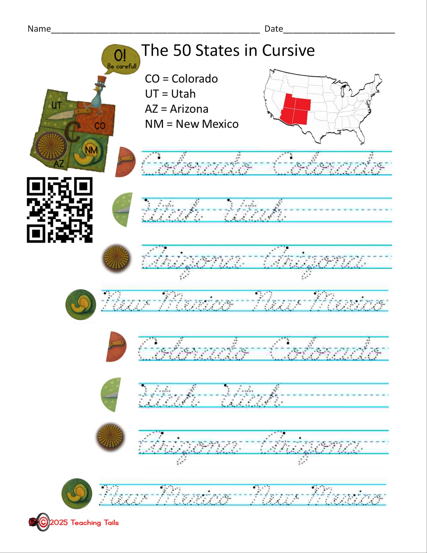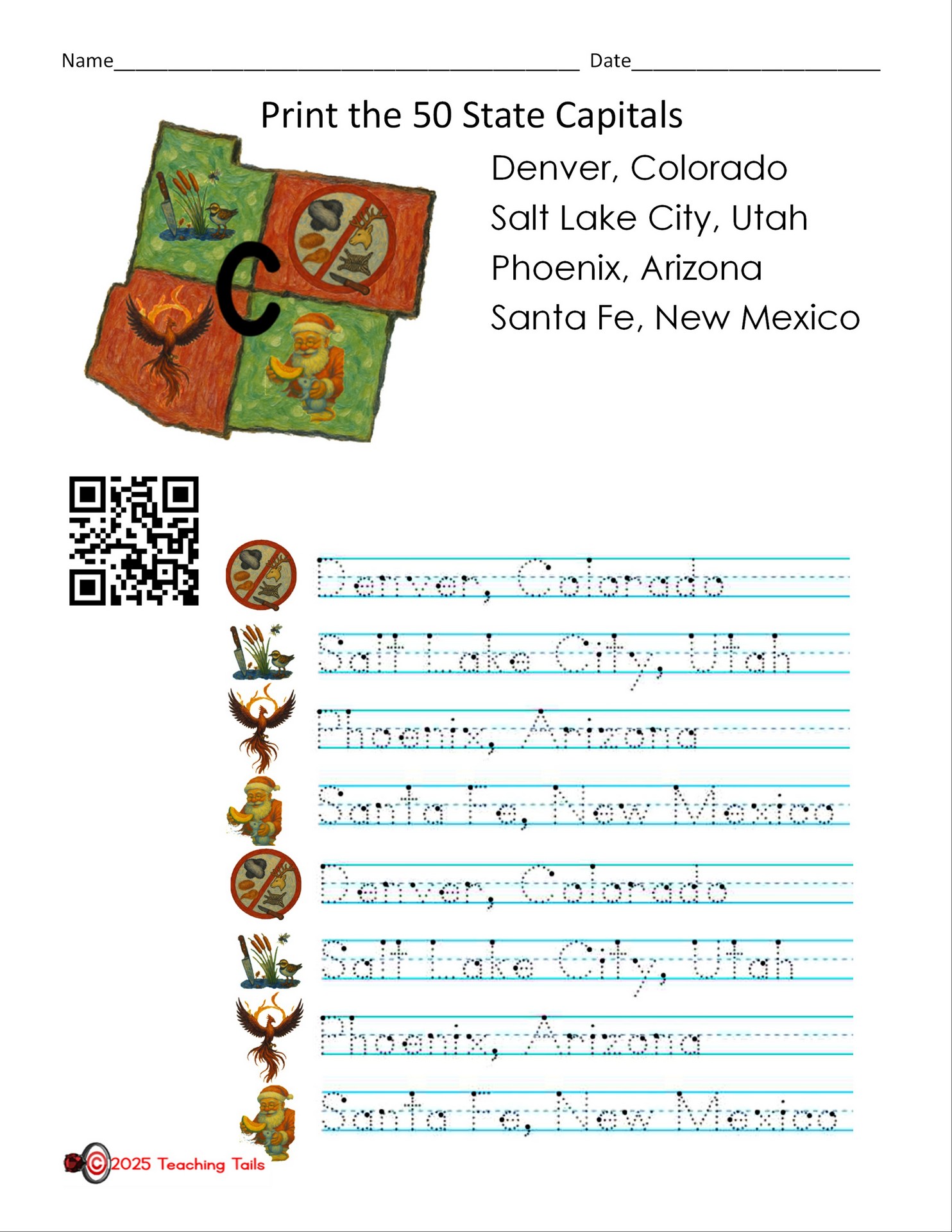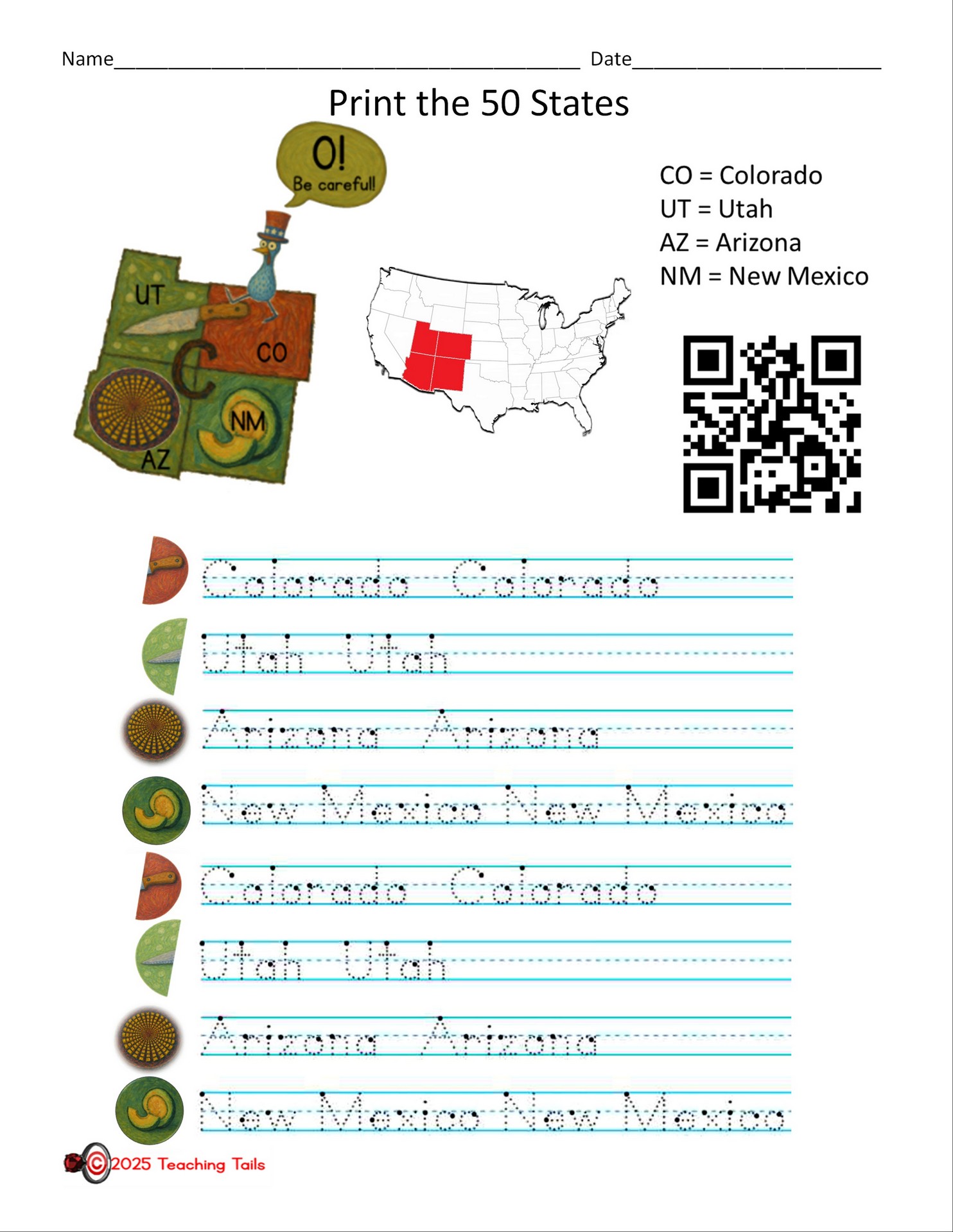 Looking for 50 States handouts and handwriting practice?